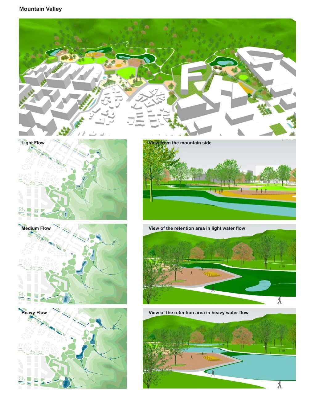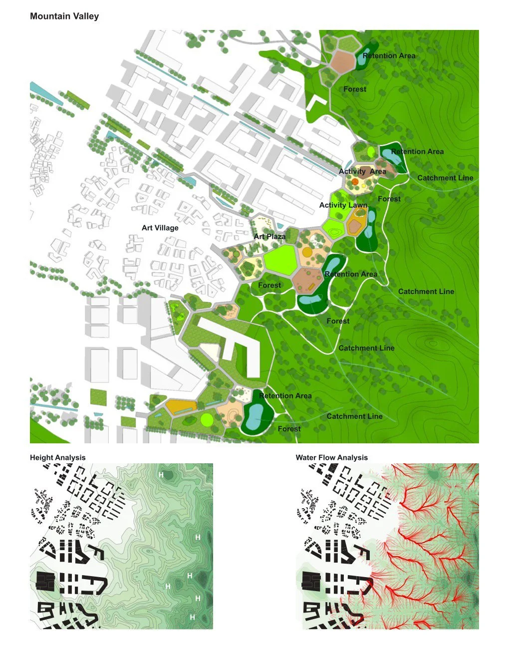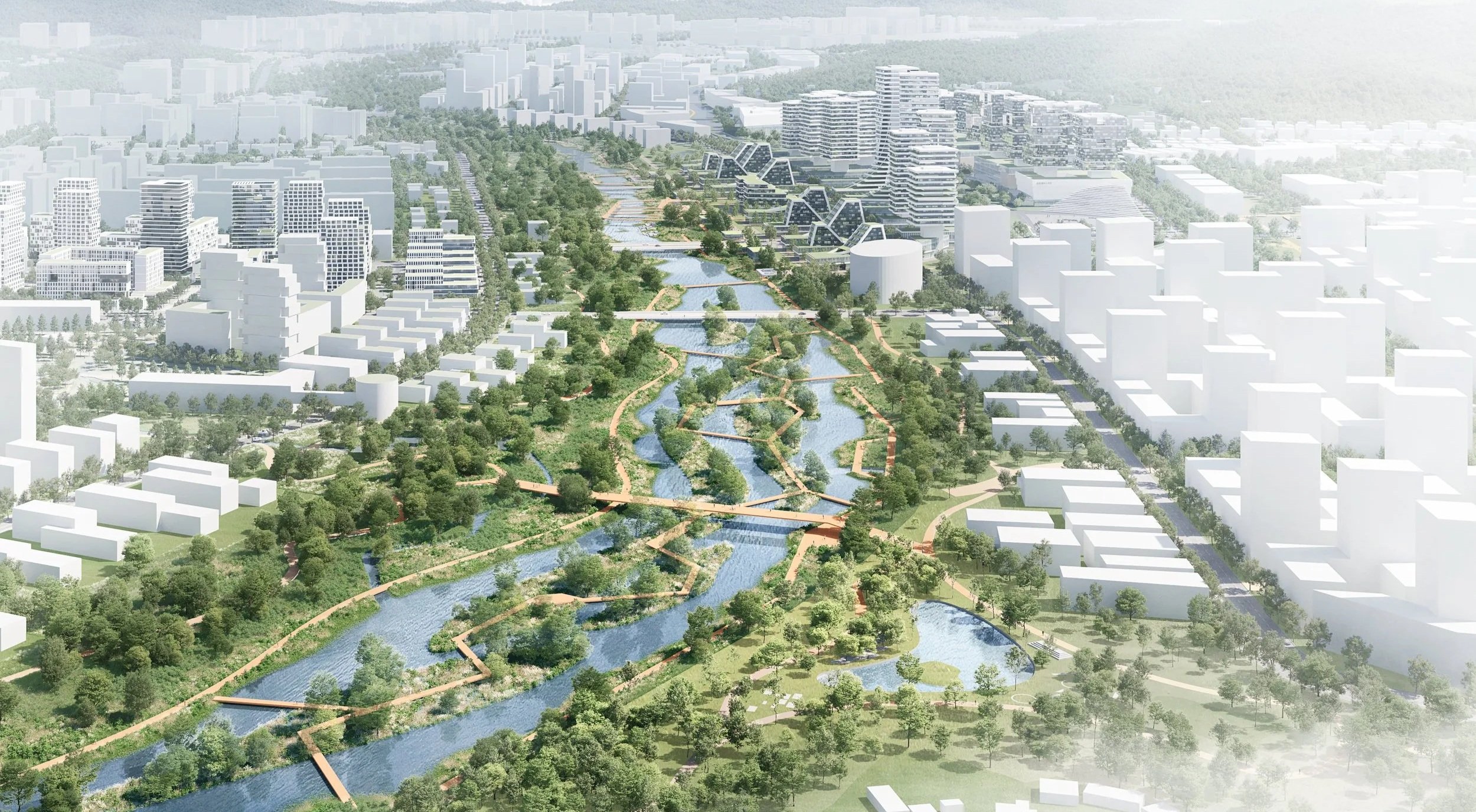 Supermass Studio collaborated with Haeahn Architecture in the international design competition for the 3rd Generation Goyang Changneung New Town. The proposal envisioned an ecologically connected open space network that links the mountain ridges of Bukhansan to the Changneung Stream, integrating green corridors and linear parkways that promote health, recreation, and everyday leisure within a 15-minute walking radius. The landscape framework emphasized resilience, cultural identity, and sustainability—transforming the new town into a model of green urban living.