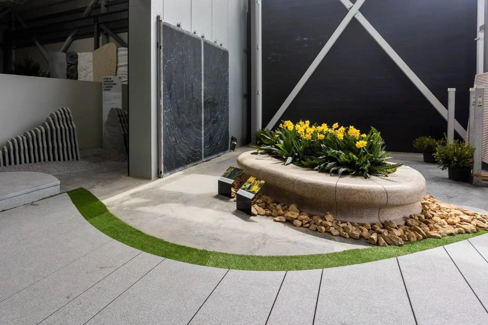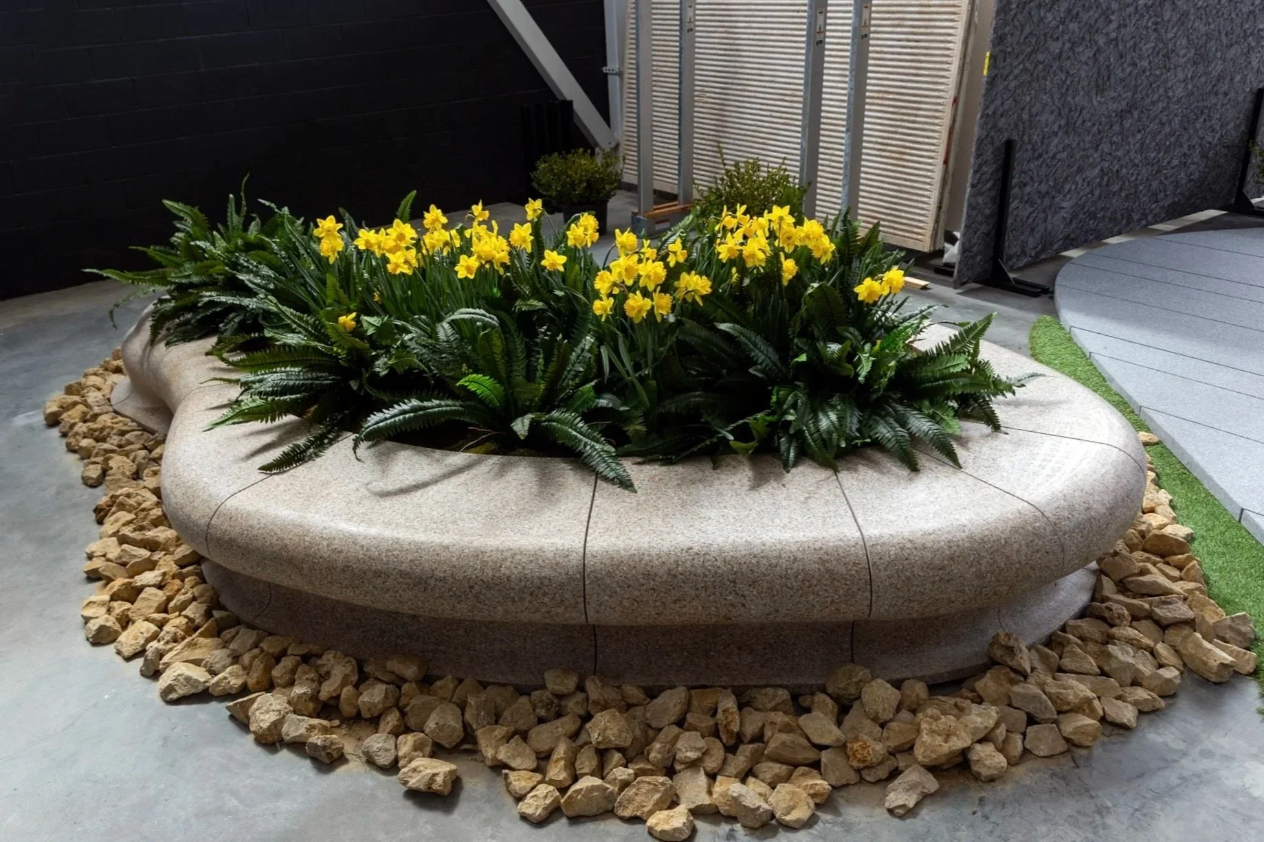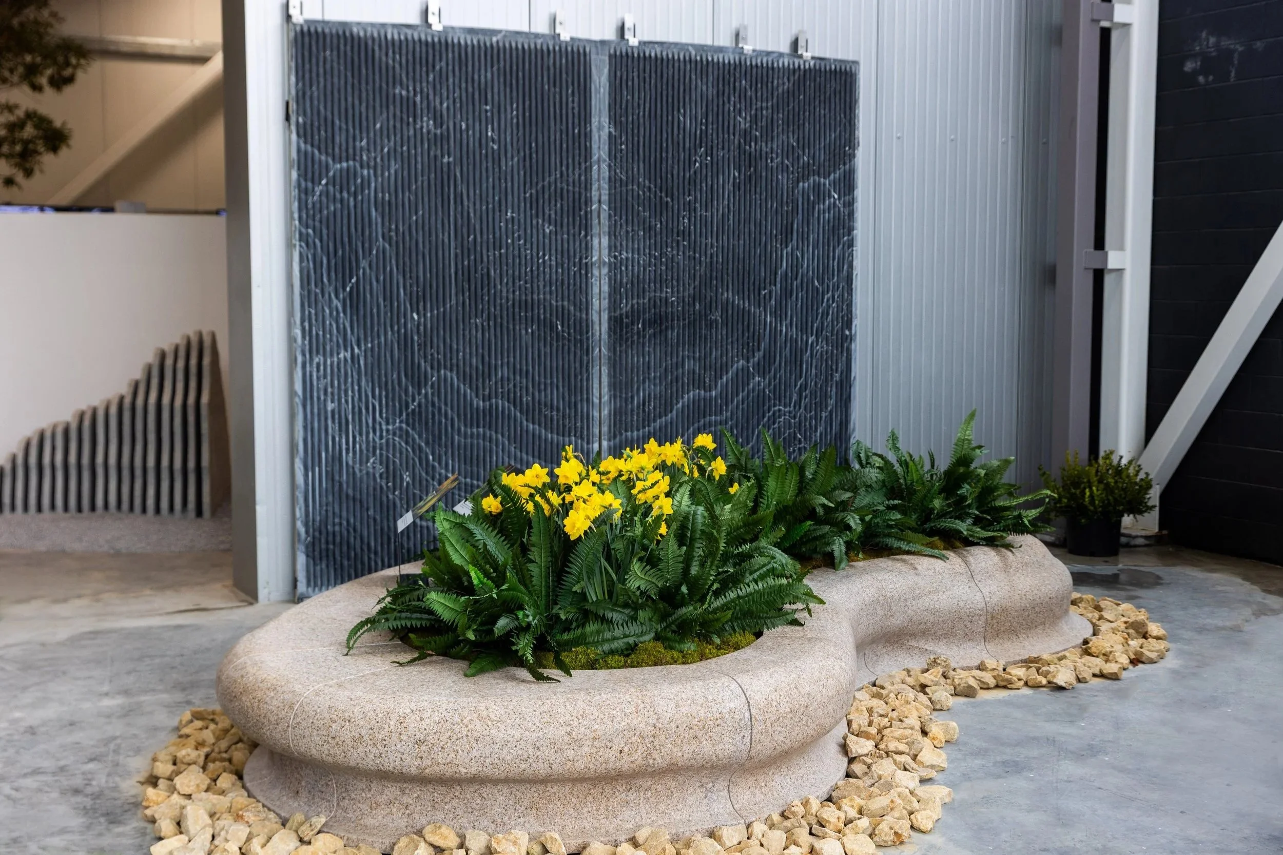 Supermass Studio was invited by ABC Stone to participate in Stone in Landscape Architecture: A Sensory Journey, an exhibition celebrating the relationship between stone and nature. Our installation reinterpreted the firm’s planter seating for LaGuardia Airport’s Terminal B, carving a golden sun granite form paired with a bed of yellow daffodils. The piece invited visitors to sit, touch, and experience the materiality of stone—transforming it from a structural element into a tactile landscape encounter.