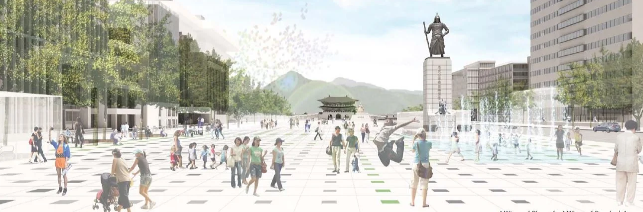In collaboration with MMK+ architects, Supermass Studio’s entry for The New Gwanghwamun Square International Design Competition was entitled “Millions of Places for Millions of People.” The proposal conceives the new square to be a continuum of various urban activities where everybody who visits has their own reasons to do so and where monumentality coexists with everyday life. Within this frame, the square may transform into many things, to a park, a passage, or back into a square. The proposal provides an unobstructed flat surface for maximum programming flexibility and viewsheds of the nearby mountains, as well as creating multiple lateral connections with nearby open spaces. It also realigns a myriad of existing fragmented underground programs that serve the adjacent buildings with a new vertical integration that generates a diversity of experiences related to the square.